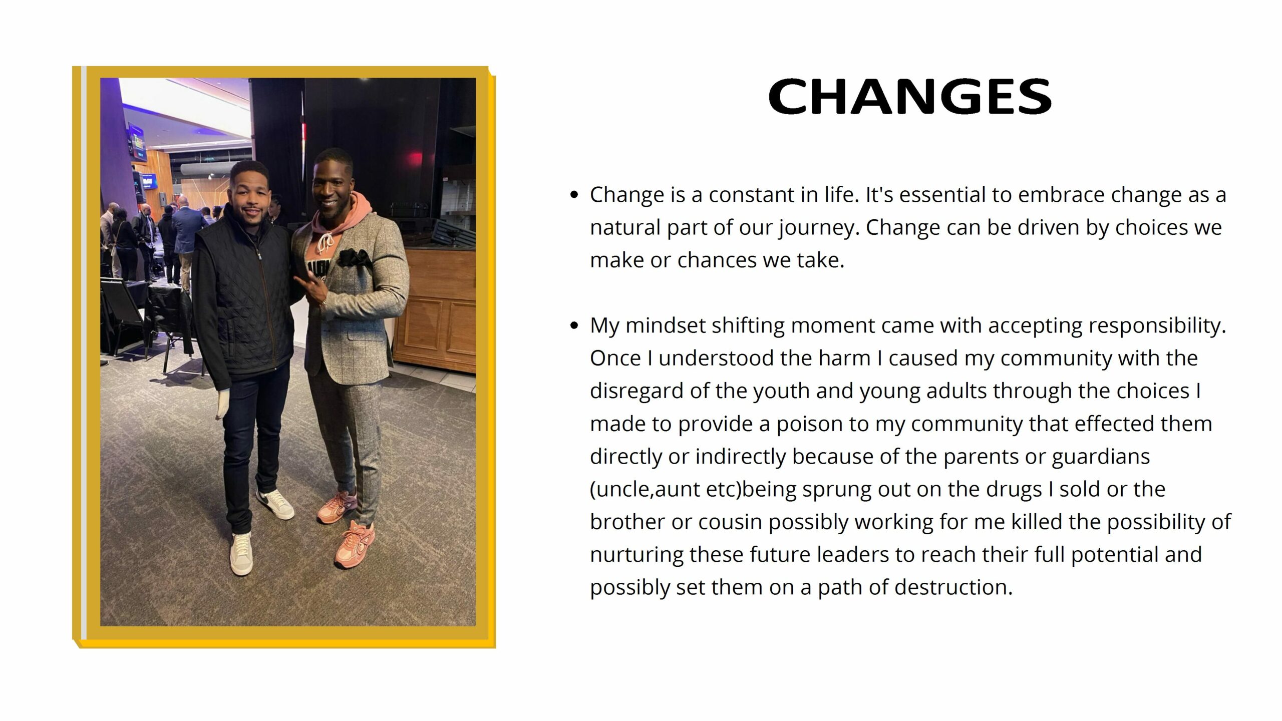 - Highlight the transformative power of change. Through change, we can learn, grow, and evolve. (Encourage the audience to be adaptable and open to new experiences.)