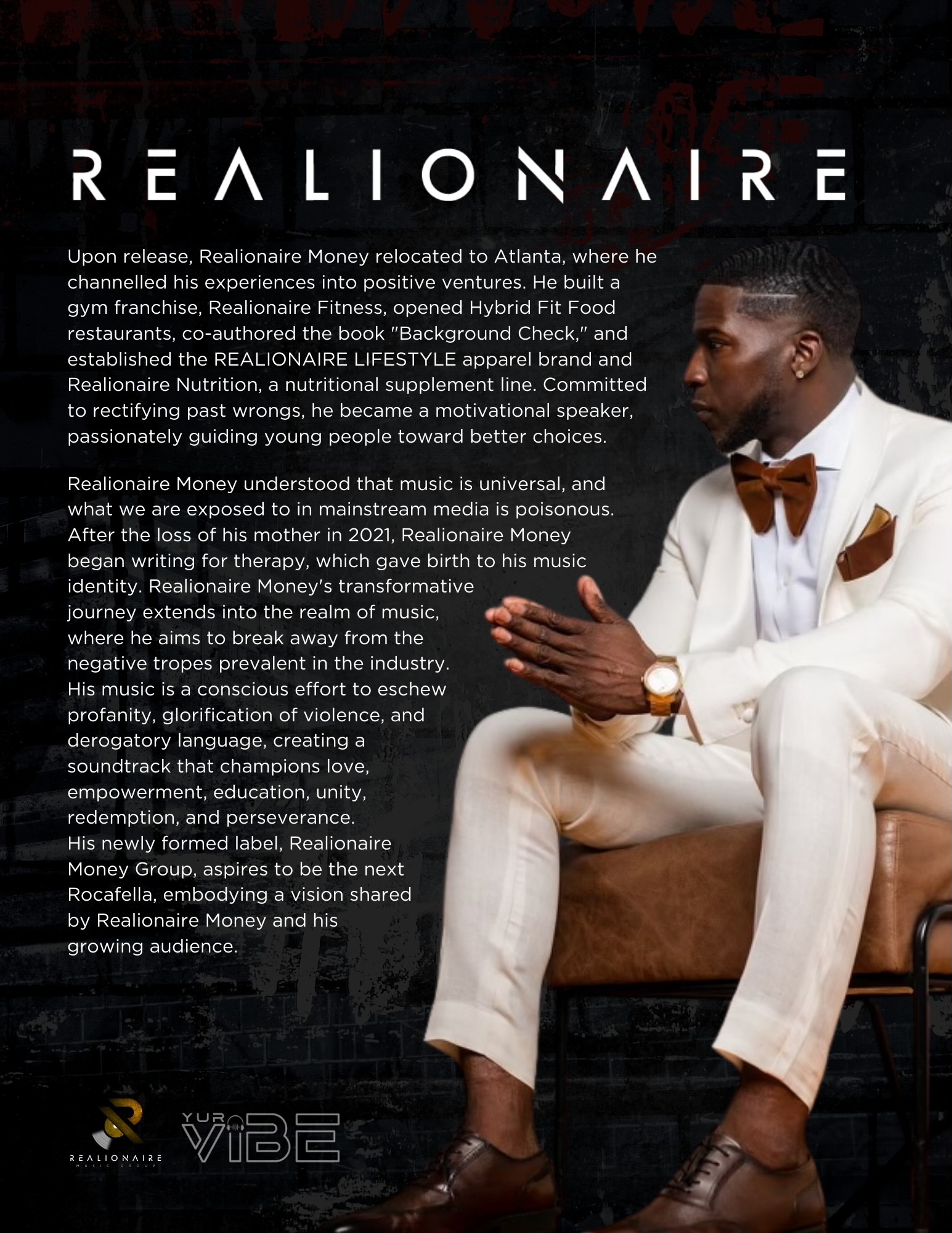Although I’ve always been a hip-hop fan, I never imagined myself as an artist. Three years ago, after my mother’s passing, I turned to writing as a form of therapy. This therapeutic outlet evolved into a positive brand of music. I’ve completed my debut album, “Bars of Revelation,” and a collaborative album with my friend Jon Rice, titled “The Mindset Shifters.” Recognizing the universality of music and the concerning content influencing today’s youth, I integrate my music – free from violence, profanity, degradation of women, or glorification of guns and drugs – into my speaking engagements. The response has been positive, and I’m eager to share this message globally. It’s the REALIONAIRE WAY🖤